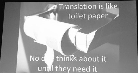 Een mooie vergelijking: Vertaling lijkt op wc-papier - niemand denkt eraan totdat je het nodig hebt.